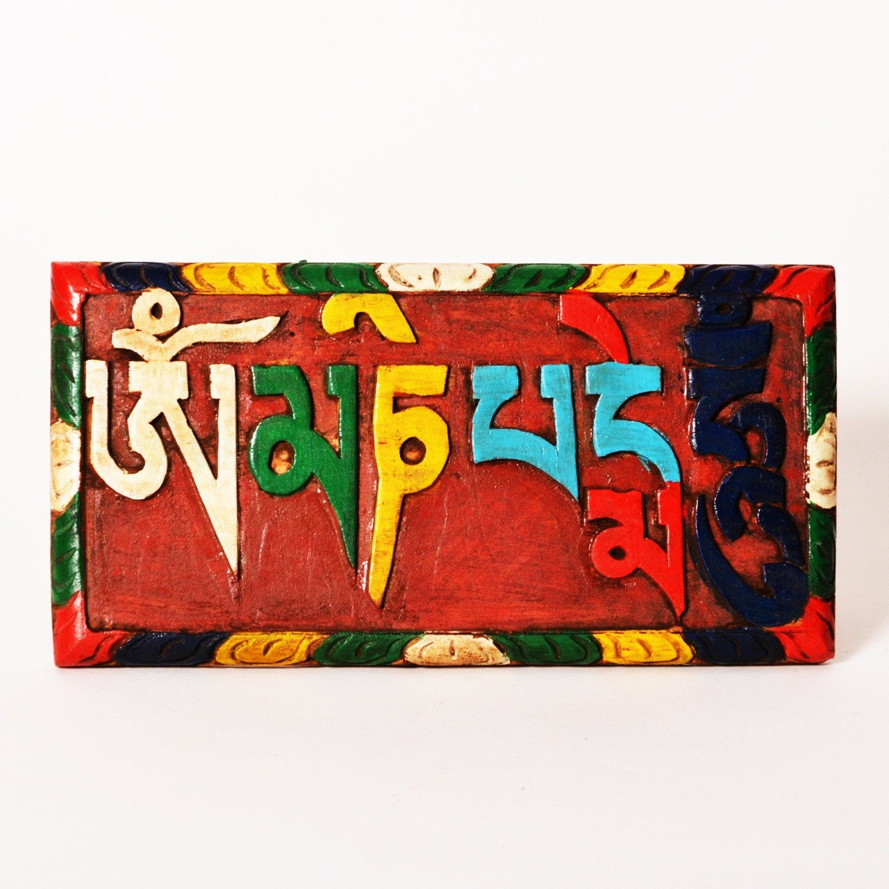 Our Wooden Om Mani Padme Hum wood carving or wooden sign is carved by Local artists in Kathmandu, Nepal. Om Mani Padem Hum ( Hail the jewel in the lotus) is a six syllable invocation (Mantra) of Avalokitesor one who is invoked as the savior and the protector from danger, So the mantra is widely found in every field of Buddhism. As per Tibetan culture it is said the all the teaching of Buddha are contained in The Mantra Om Mani Padme hum. It is also believed to know Mantra is to know enlightment.
